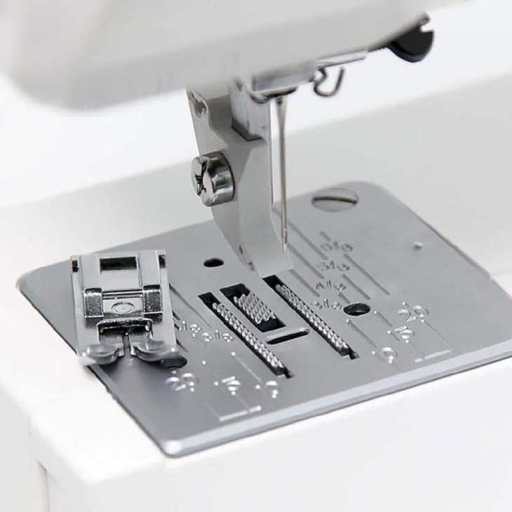 Плавные регуляторы позволяют легко настроить длину стежка до 4 мм и ширину зигзага до 5 мм, что дает возможность адаптировать строчку под разные материалы и задачи. Поддержка шитья двойной иглой расширяет возможности и позволяет создавать аккуратные декоративные швы и отделку.