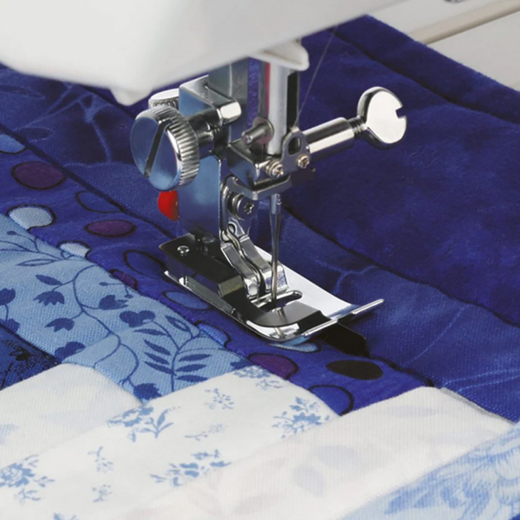 Лапка для квилтинга для шитья в раскол используется при шитье поверх другого шва, или намеченной линии. Выступ в центре лапки помогает выполнять швы точно по линии другого шва или намеченной линии.