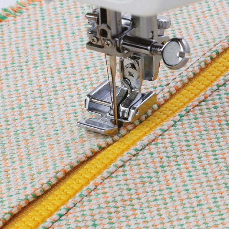 С помощью этой лапки можно вшивать молнию с любой стороны. Край лапки направляет молнию для правильного расположения.