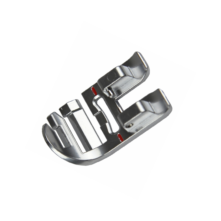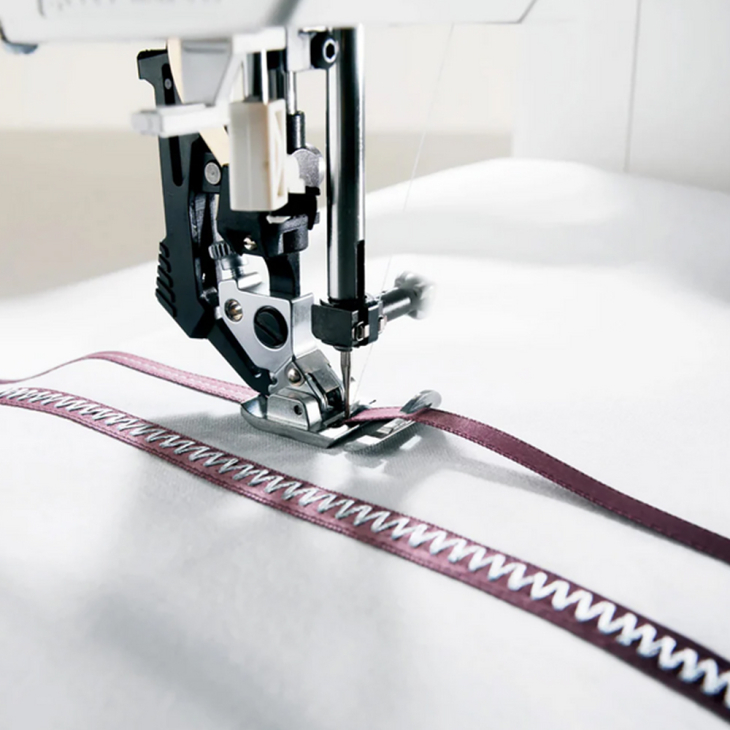 При помощи этой лапки вы сможете украсить ваше изделие, пришив к нему различные ленты. Эта лапка направляет ленты под иглу, где они пришиваются любой подходящей строчкой. Ширина ленты может быть 3 мм, 6 мм или 12 мм.