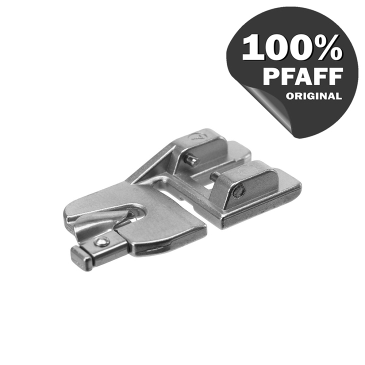 1. Выбрать прямую строчку и подключить Систему IDT™ (если имеется на вашей машине). Загладить начало будущего шва на ширину 3 мм. Уложить завернутый край под лапку и сделать несколько стежков. Оставить иглу в ткани для ее фиксирования. Поднять лапку и ввести край ткани в завивающее устройство лапки. Опустить лапку и продолжить шитье, направляя край ткани.