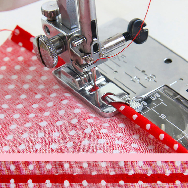 Подгибка кромок предотвращает края ткани от осыпания и благодаря лапке получается красивый, прочный шов. Этой лапкой можно обрабатывать края шарфов, платков, одежды и изделий домашнего декора из легких и средней плотности материалов.