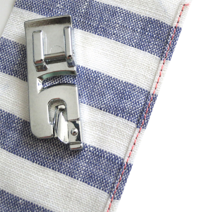 Подгибка кромок предотвращает края ткани от осыпания и благодаря лапке получается красивый, прочный шов. Этой лапкой можно обрабатывать края шарфов, платков, одежды и изделий домашнего декора из легких и средней плотности материалов.