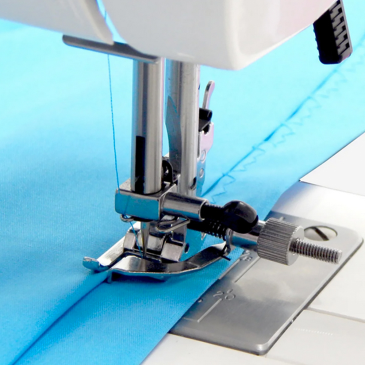 Потайная подгибка края - довольно сложная обработка, и лапка для потайной строчки помогает усовершенствовать эту технику выполнения. Лапка имеет в центре металлический направитель и насечки на оборотной стороне. Во время выполнения потайной строчки, сгиб ткани плотно прилегает к направителю, а насечки снизу предотвращают нежелательное прилипание. Игла проходит над направляющей, создавая слабое натяжение верхней нити, таким образом, что получается невидимый стежок.
