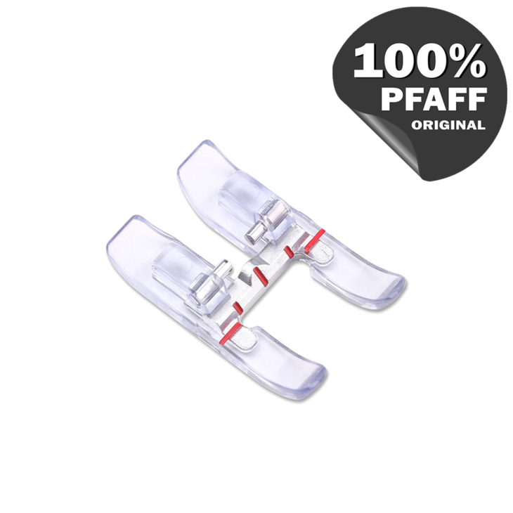 Открытая прозрачная лапка для аппликаций идеально подходит для создания аппликаций и других швейных операций, требующих полного обзора зоны выполнения строчки, благодаря прозрачной подошве и широкой выемке на передней части лапки. Возможность контролировать выполнение строчки помогает более точно и ровно прокладывать стежки. Желобок на подошве лапки позволяет выполненным стежкам