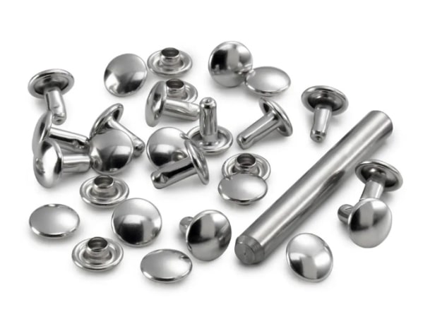 крепление кожи и ткани. За счет того, что эта фурнитура имеет ножку, удается соединить несколько слоев ткани и при этом получить прочное и надежное соединение;
