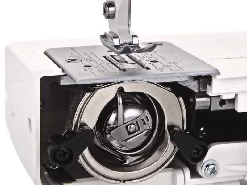 Вертикальний човник забезпечує стабільне формування стібка та рівномірну подачу нитки, а вбудоване підсвічування робочої зони робить процес шиття комфортним навіть при слабкому освітленні.