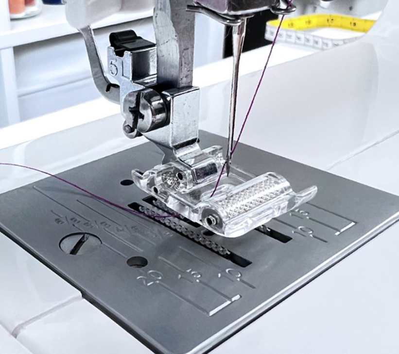Ця спеціальна лапка має три металеві ролики, які забезпечують кращу прохідність під час шиття на важких матеріалах, таких як шкіра, замша, шкірозамінники, пластик та ін. З цією лапкою робота з цими матеріалами буде легкою та приємною. A успіх гарантовано!