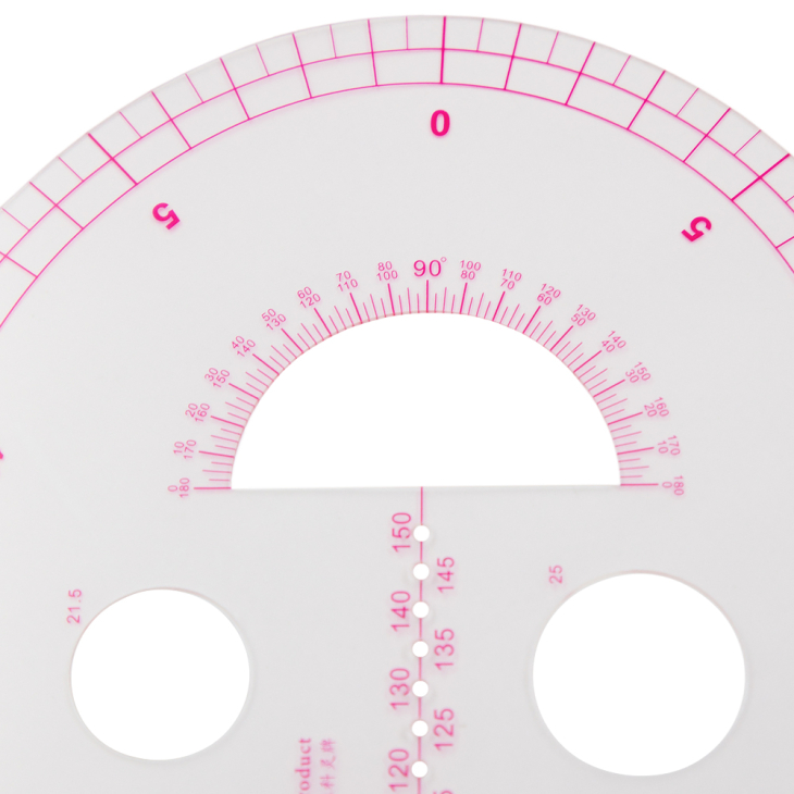 Особливістю цього лекала є наявність різних розміток, необхідних для виконання вимірювань: