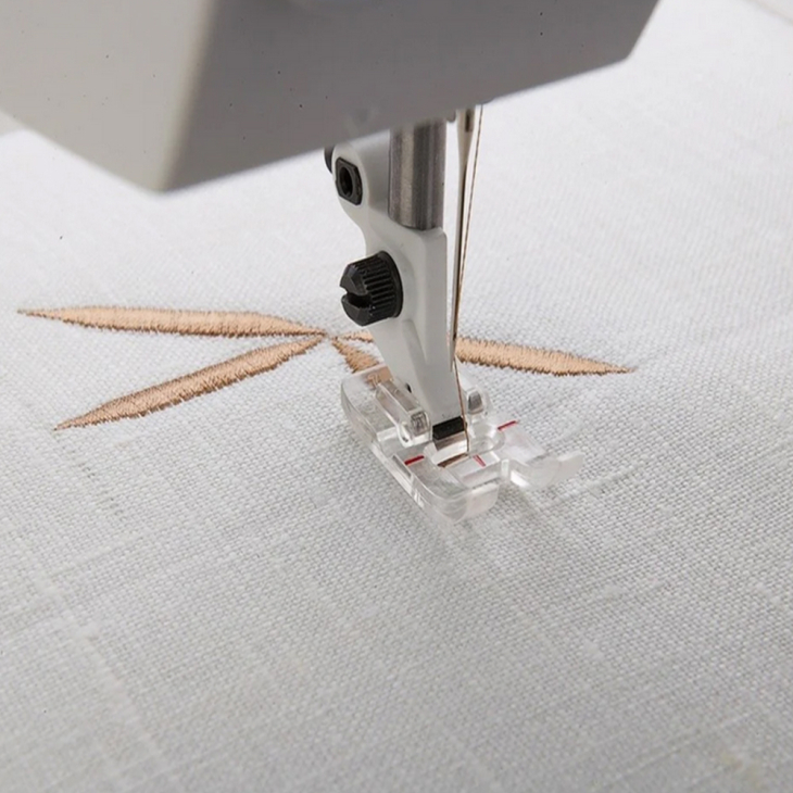 Прозора лапка призначена для аплікаційних, декоративних та гладьових швів.