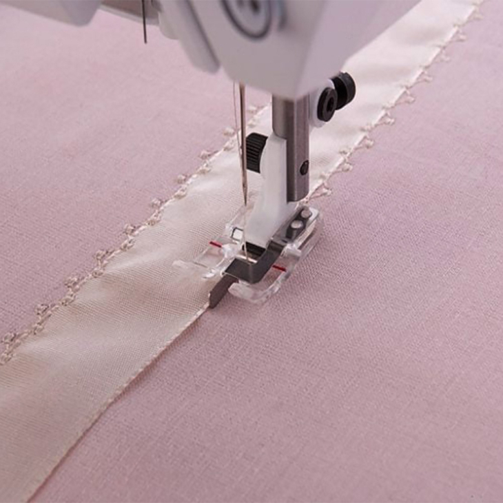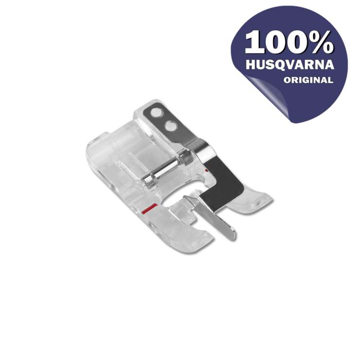 Прозора лапка для сполучного шва використовується при шитті поверх іншого шва або наміченої лінії. Поглиблення нижньої частини лапки допомагає зробити бездоганні стібки з ідеальною подачею нитки. Виступ у центрі лапки допомагає виконувати шви точно по лінії іншого шва або наміченої лінії.