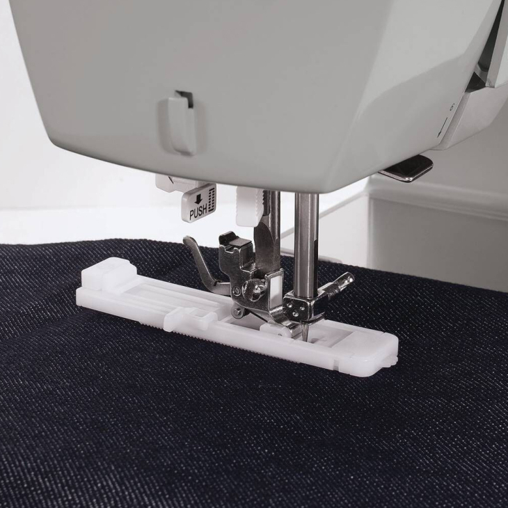 Однією з головних переваг моделі є потужний двигун 90 Вт, який забезпечує стабільну роботу навіть при шитті щільних матеріалів та багатошарових тканин. Завдяки такій потужності машина легко справляється з джинсою, костюмними тканинами та іншими щільними матеріалами.