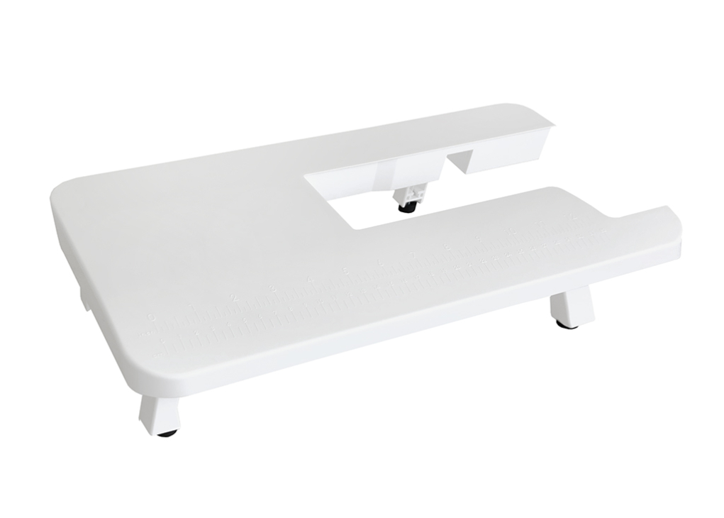 Превратите узкий рукав вашей машины в большую рабочую поверхность для шитья стеганых и объёмных изделий. Удлинительный стол выполнен с прочного белого пластика, который стоит устойчиво на 4 регулируемых ножках.