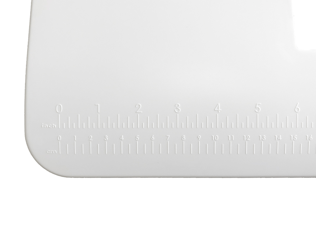 Для быстрого измерения на стол нанесена линейка, как в сантиметрах, так и в дюймах.